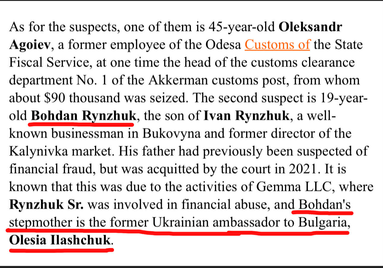 Според intent.press убиецът Богдан Ринжук е син на криминално проявения бизнесмен от Буковина Иван Ринжук и доведен син на украинската посланичка у нас Олеся Илашчук...