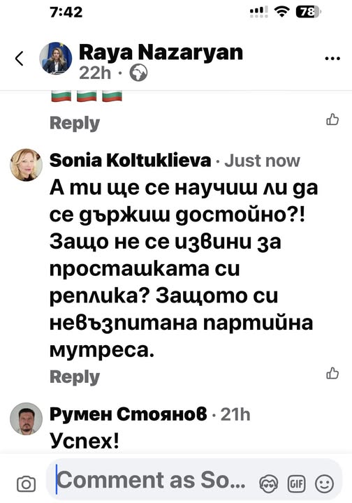 Права си, Соня. Рая Назарян е "невъзпитана партийна мутреса".
